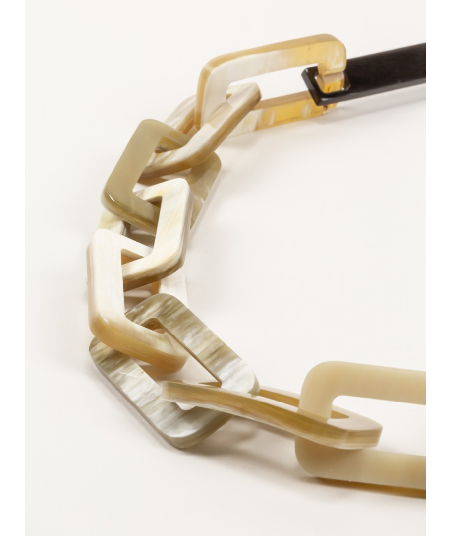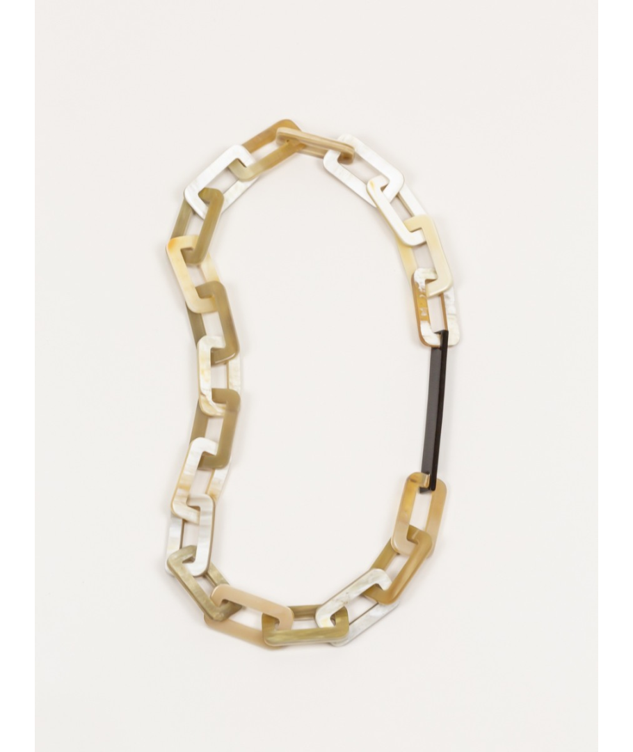 Sautoir Tige anneaux rectangulaires en corne blonde et noire