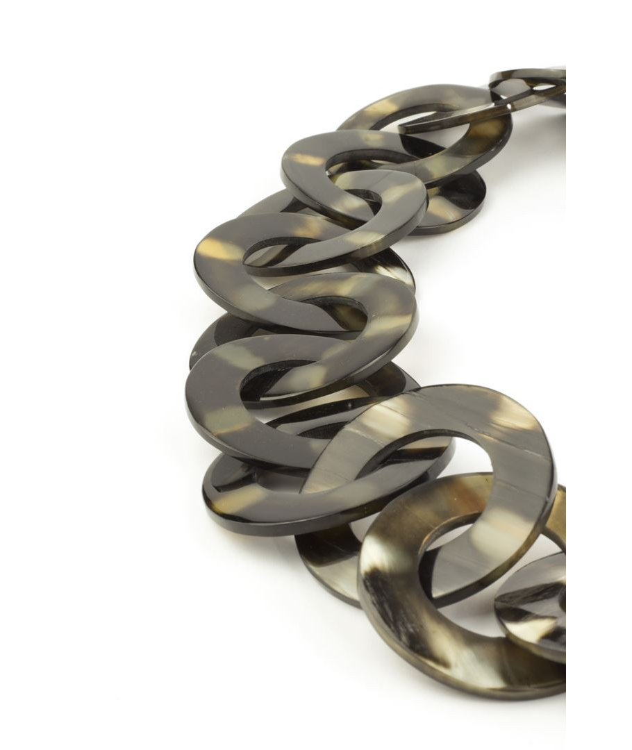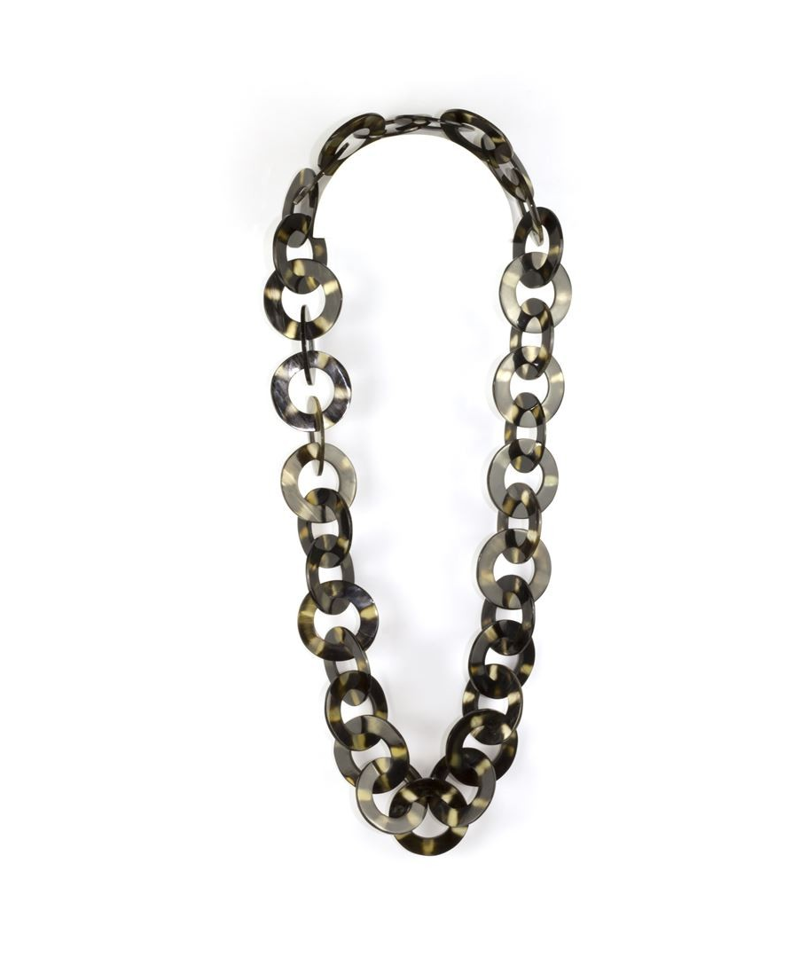 Sautoir gros anneaux ronds effet écailles tortue en corne