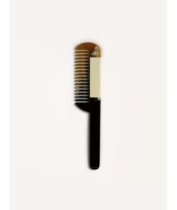 Peigne manche démêlant en corne noire marbrée et laque ivoire trait