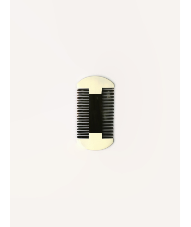 Peigne à barbe en corne noire marbrée, laque ivoire extérieure