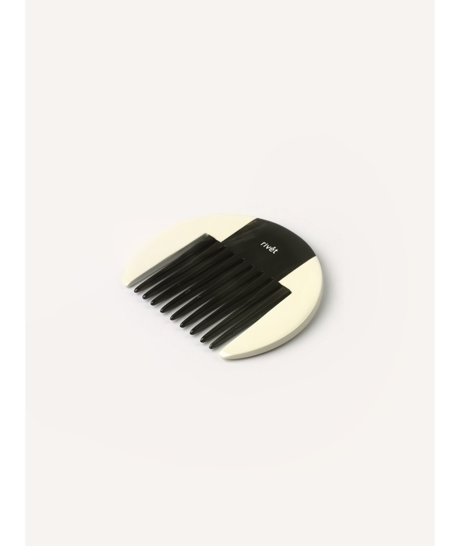 Peigne Afro en corne noire marbrée, laque ivoire extérieure