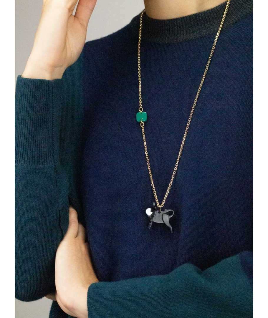 Buffalo charm for necklace in black horn and mother-of-pearl, sold without chain, to match with the chain of the color/element of your choice BJX834