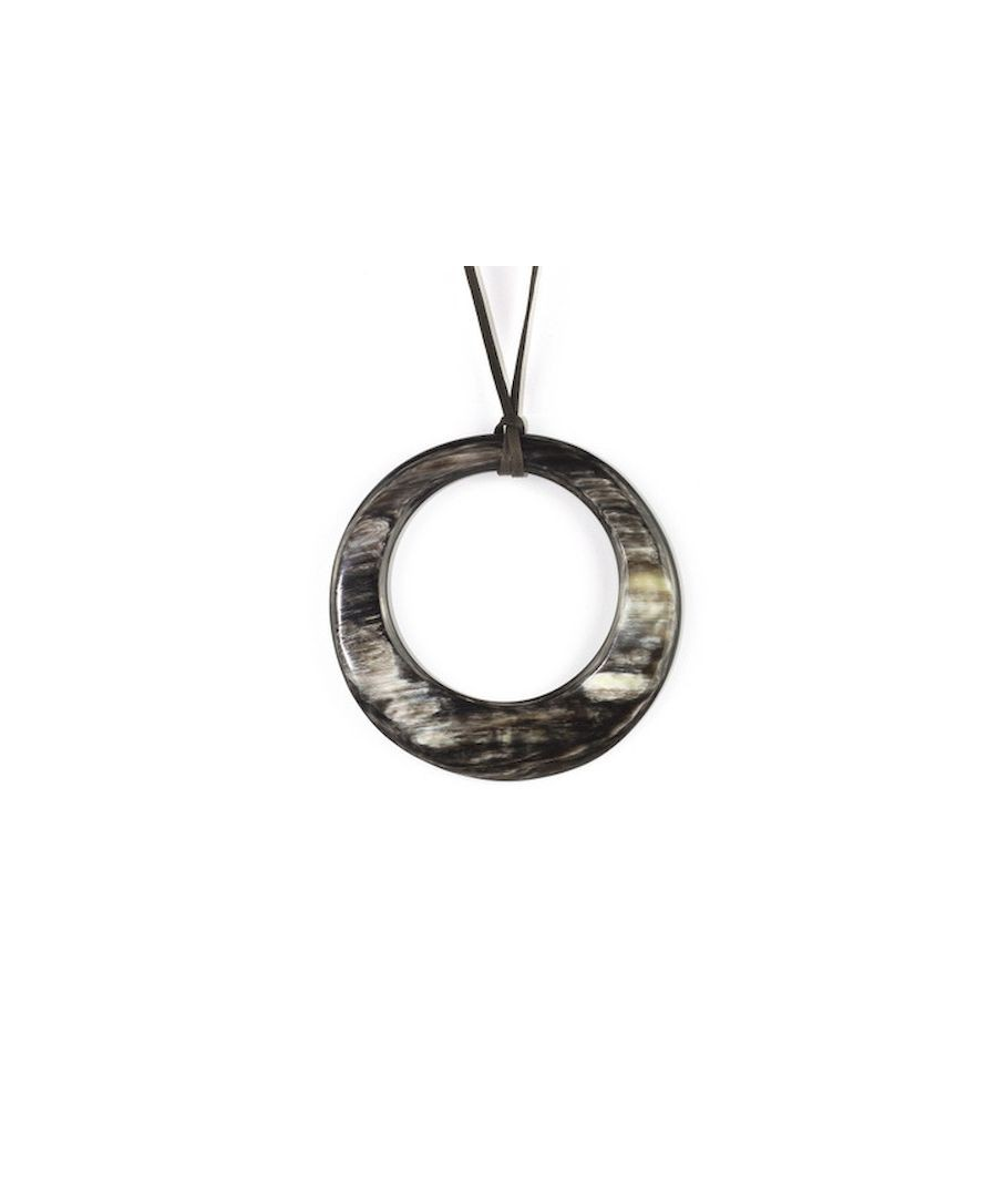 Pendentif grand anneau irrégulier en corne noire marbrée