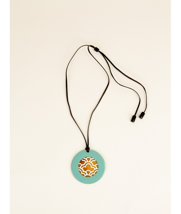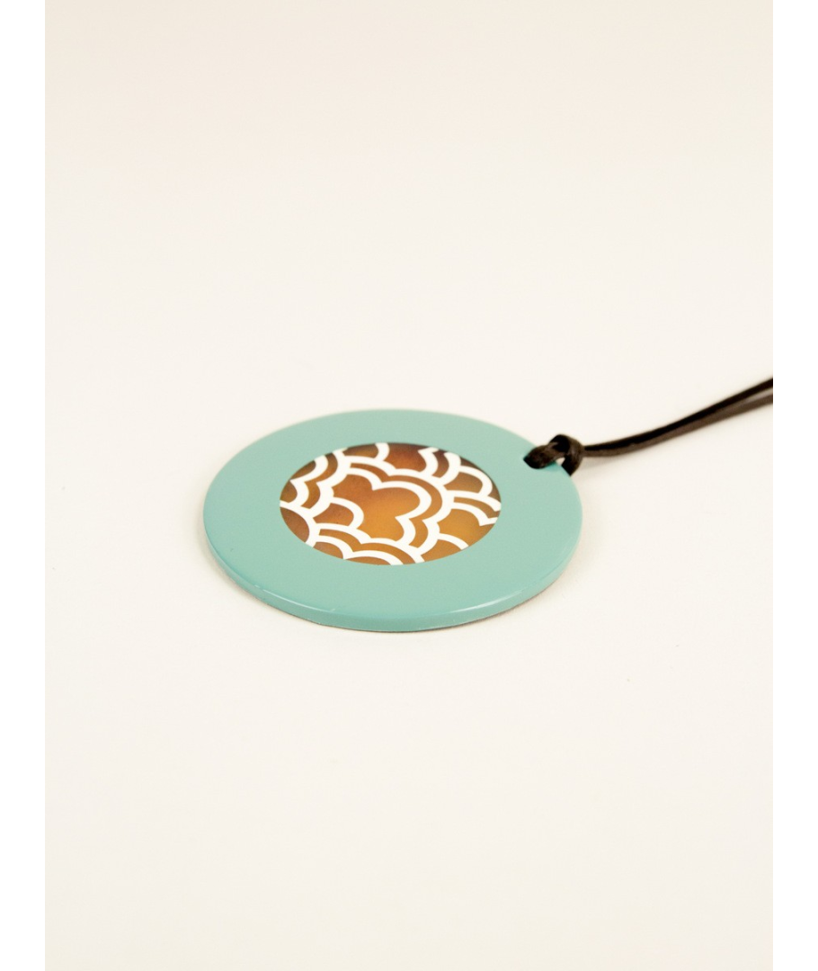Pendentif rond aux motifs Vague avec laque ivoire et kakhi
