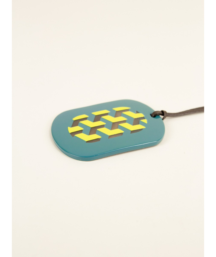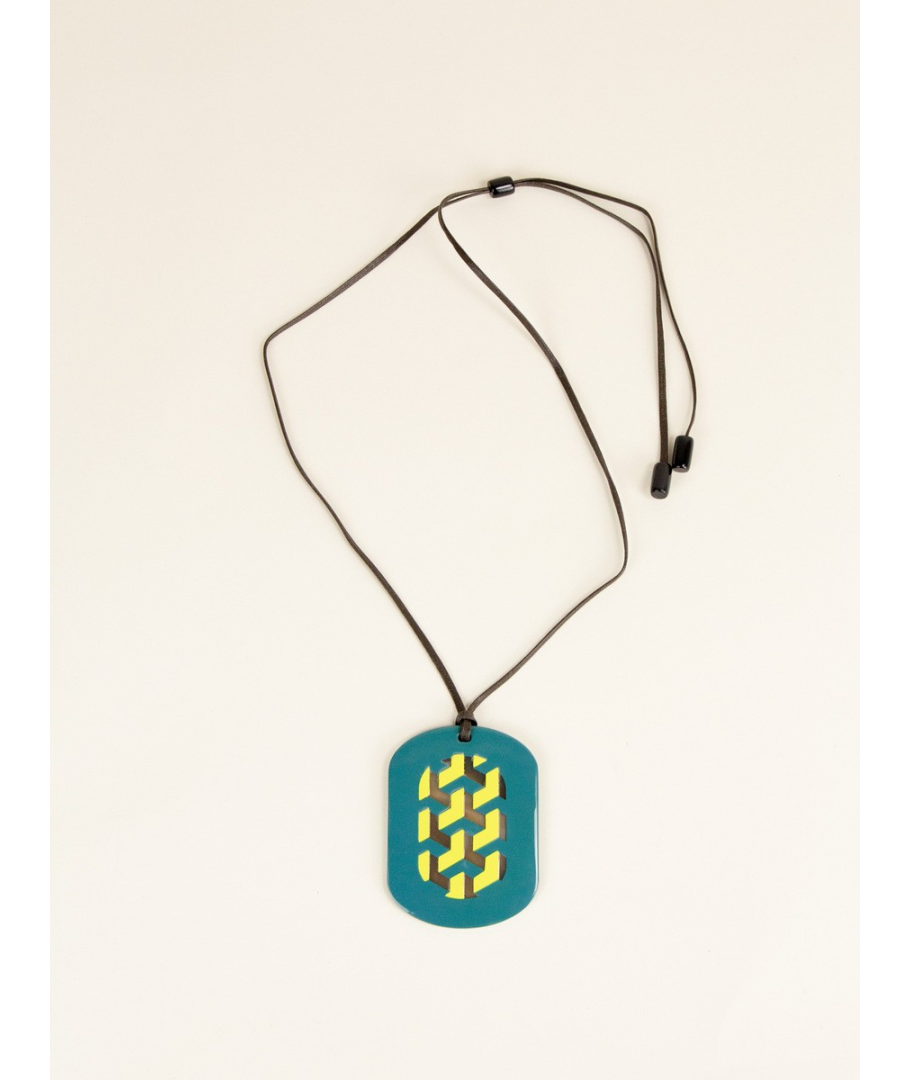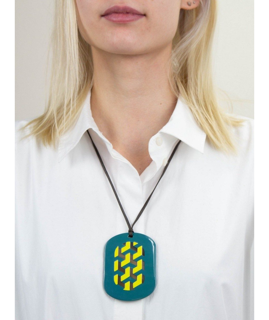 Pendentif oval aux motifs Tresse avec laque vert pétrole et jaune