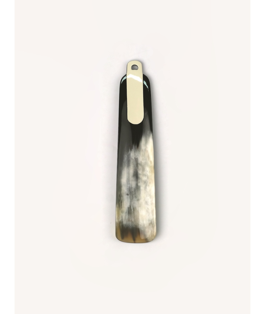 Petit chausse-pied en corne noire marbrée et laque ivoire