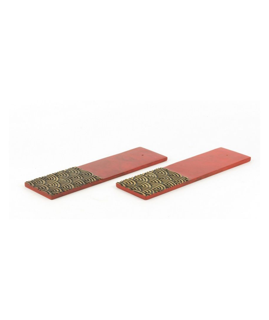 Set de 2 portes-encens vagues en pierre fond rouge