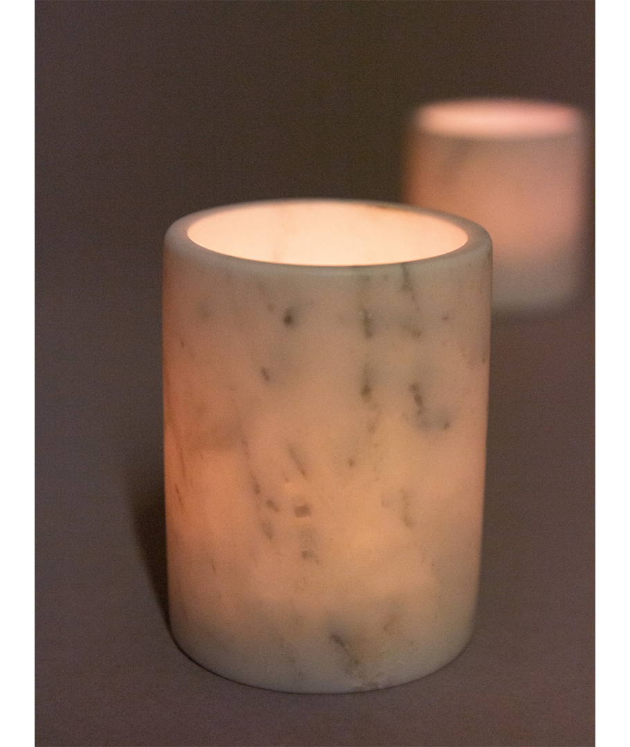 Large round candle holder white marble