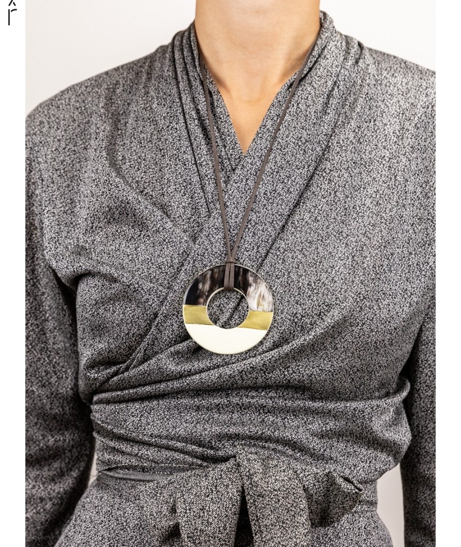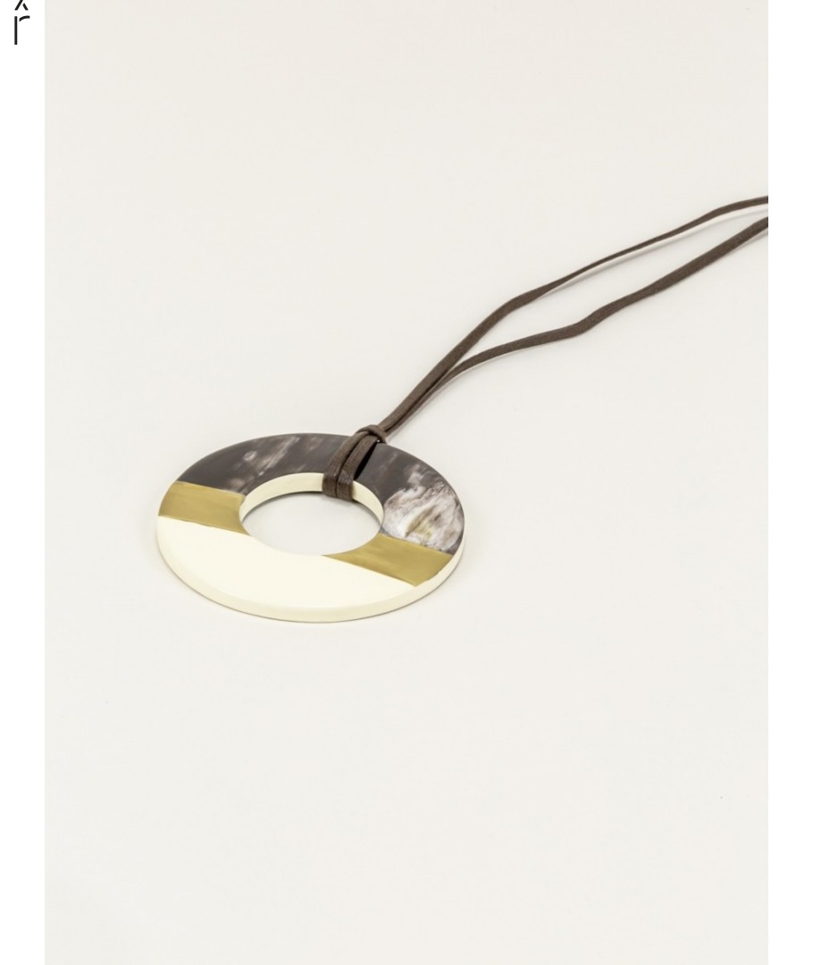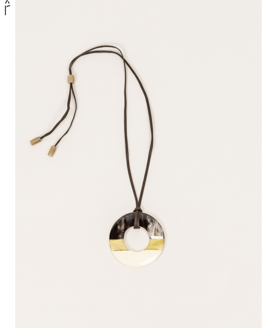 Pendentif anneau corne noire Africaine, laque ivoire et laiton