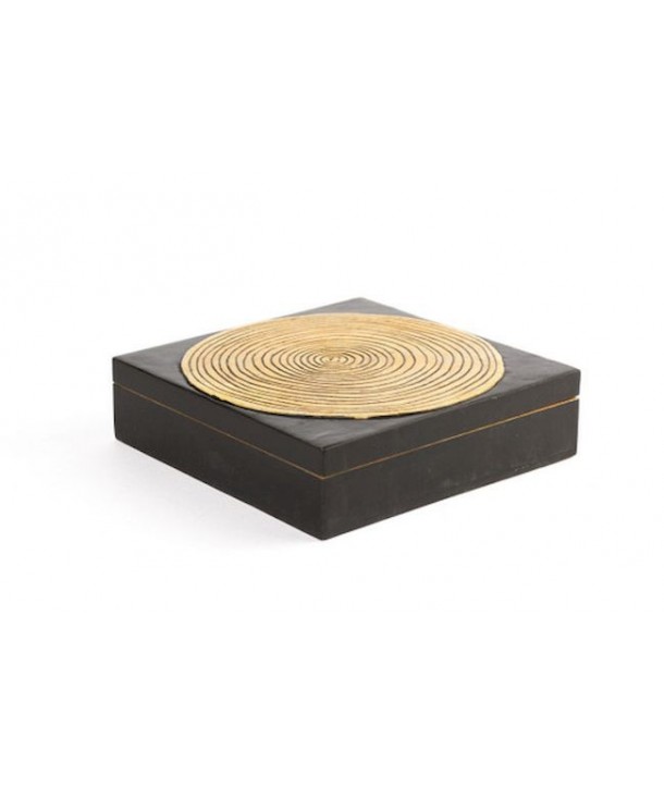 Grande boîte carrée plate en pierre fond noir à motif bambou roulé