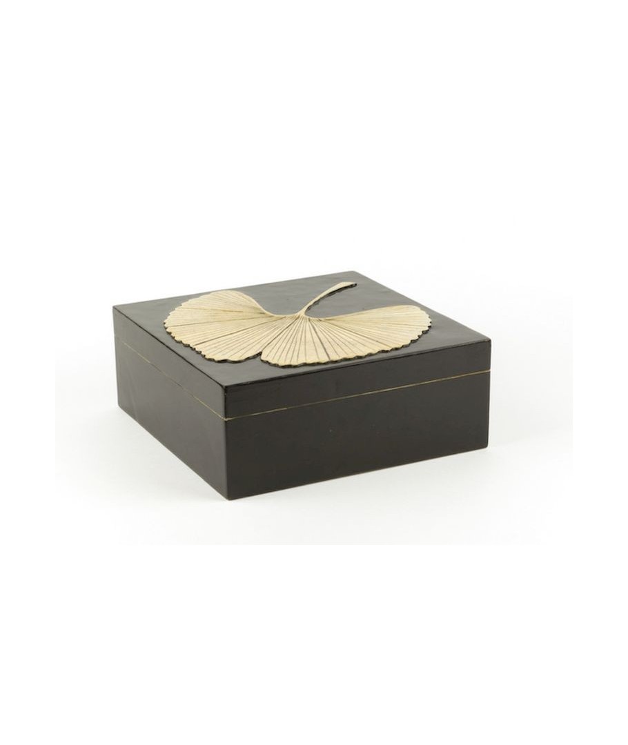 Très grande boîte carrée en pierre fond noir à motif ginkgo