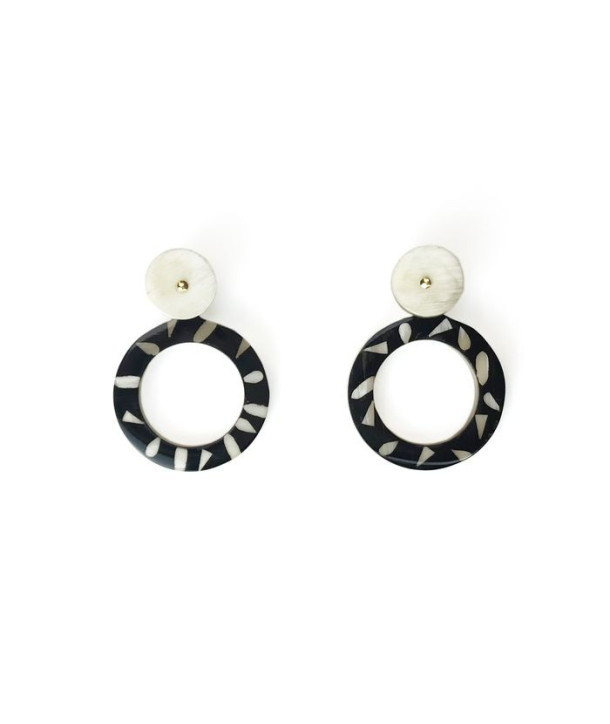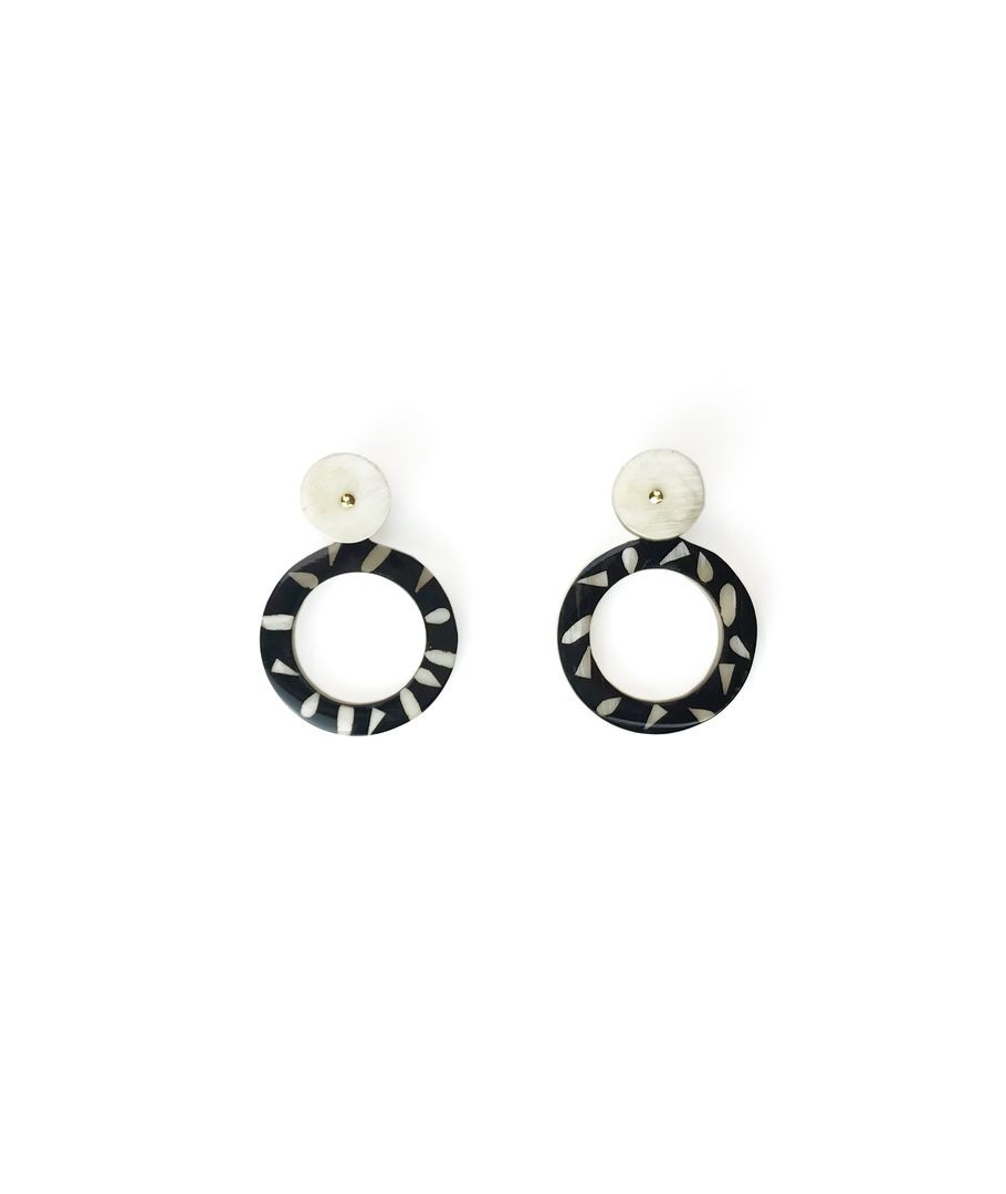 Boucles d'oreilles rondes avec pastilles Terrazzo en corne blanche