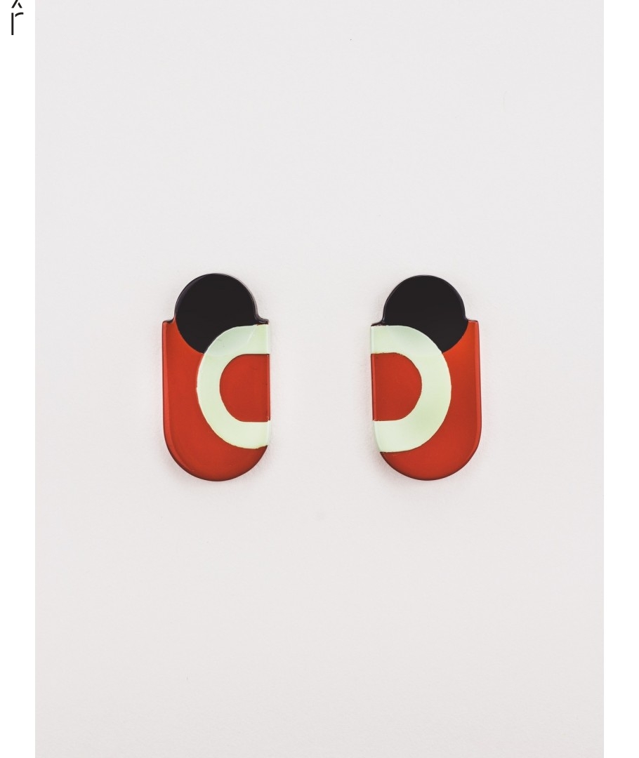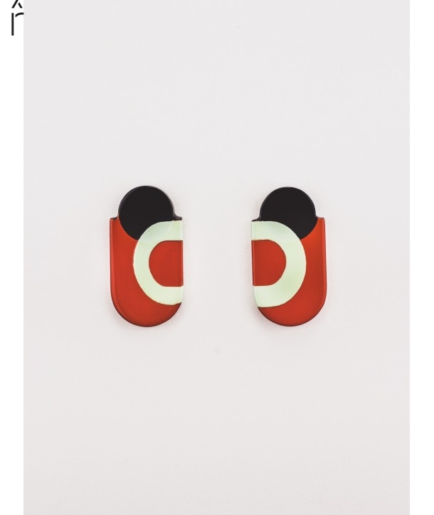 Boucles d'oreilles B1 en corne noire et laque orange et verte