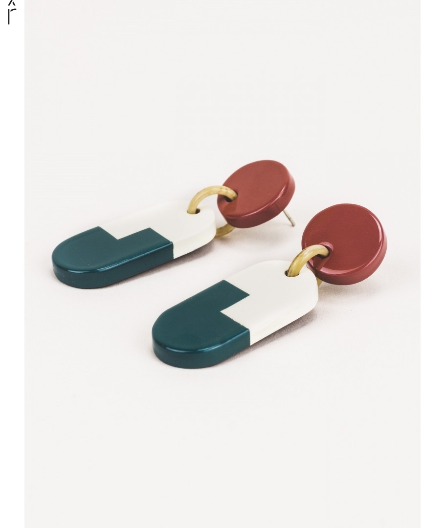 Boucles d'oreilles C3 en corne et laque tricolore
