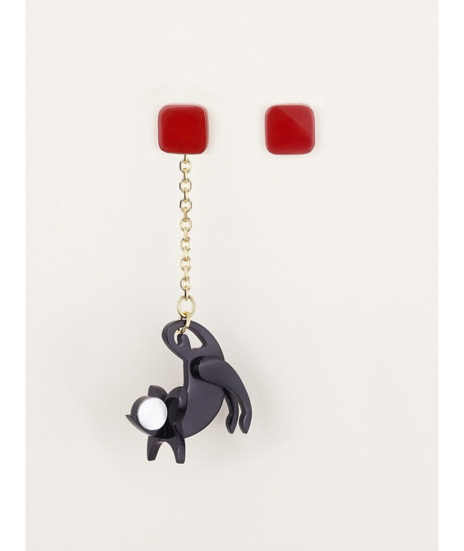Bijou d'oreille Rat en corne noire et nacre blanche, vendu à l'unité, à assortir avec les boucles d'oreilles BJX733