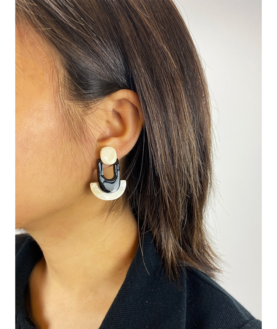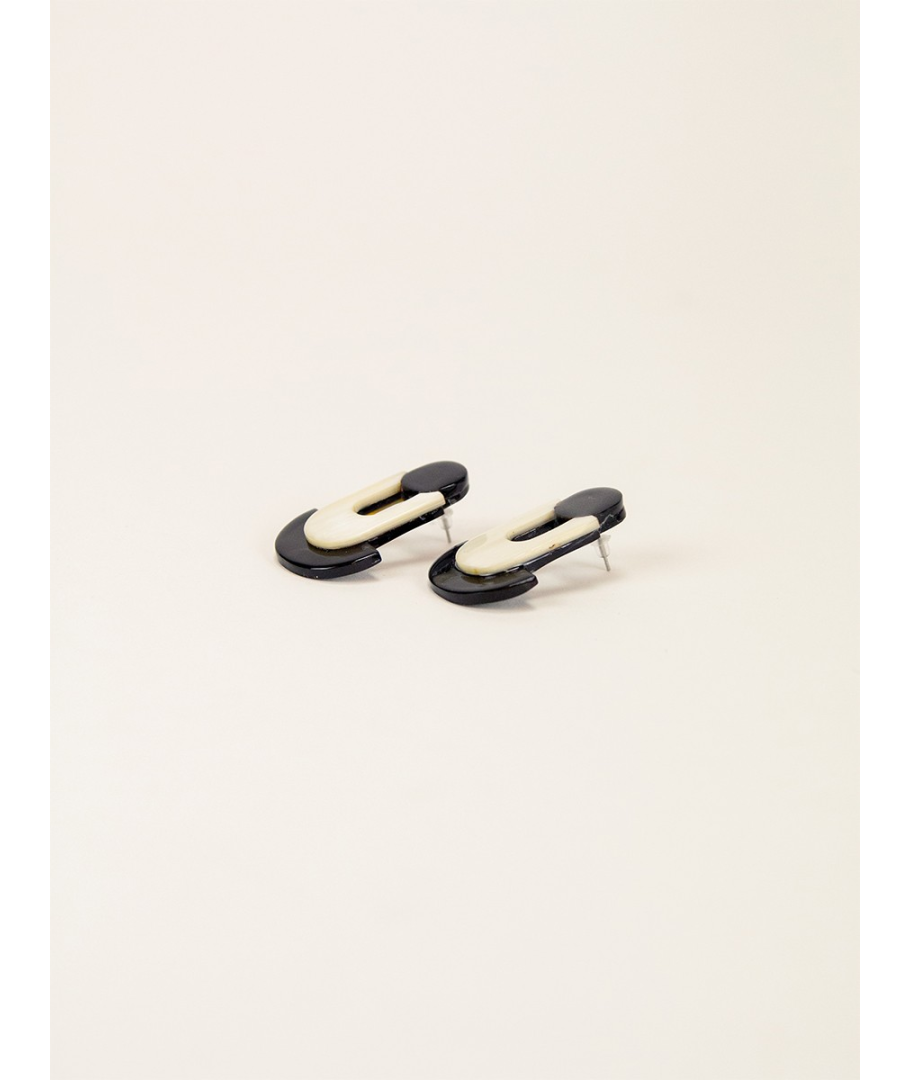 Boucles d'oreilles géométriques en corne blonde et noire