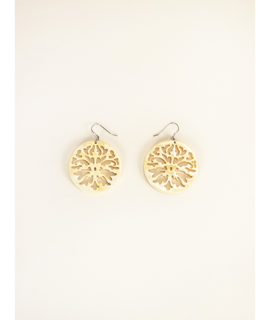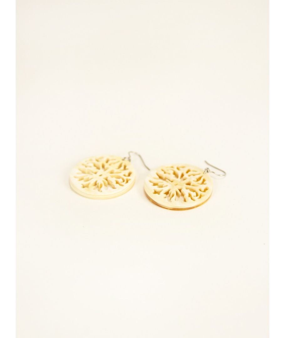 Boucles d'oreilles dentelle de Calais en corne blanche africaine