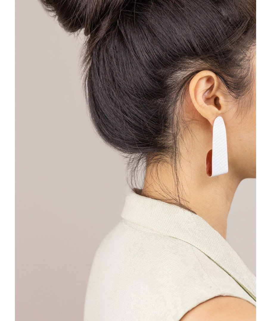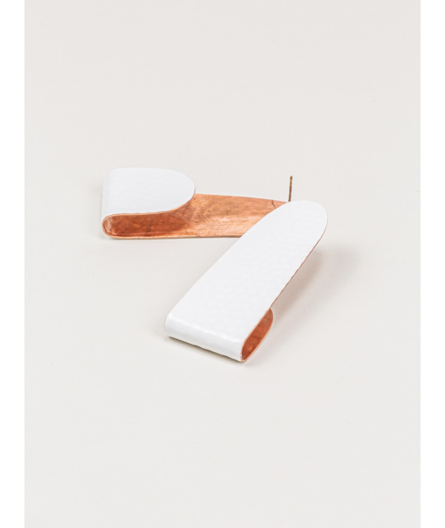 Grandes boucles d'oreilles martelées et pliées en cuivre avec laque blanche