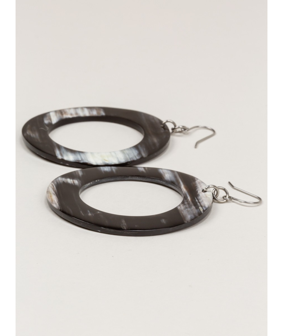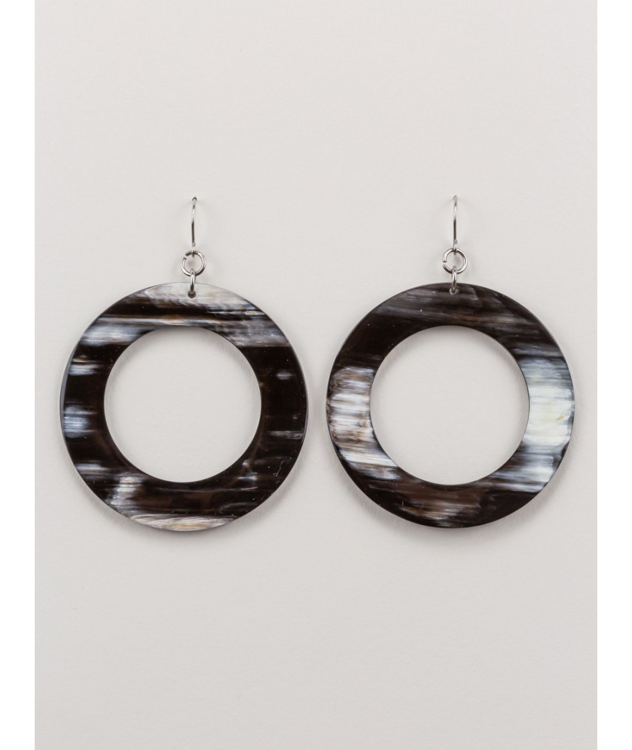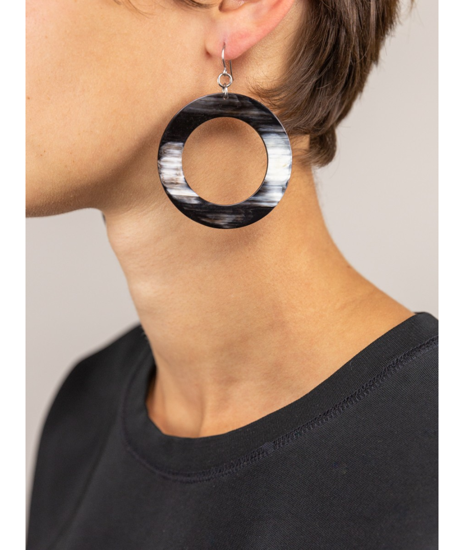 Boucles d'oreilles grand anneau plat en corne noire marbrée