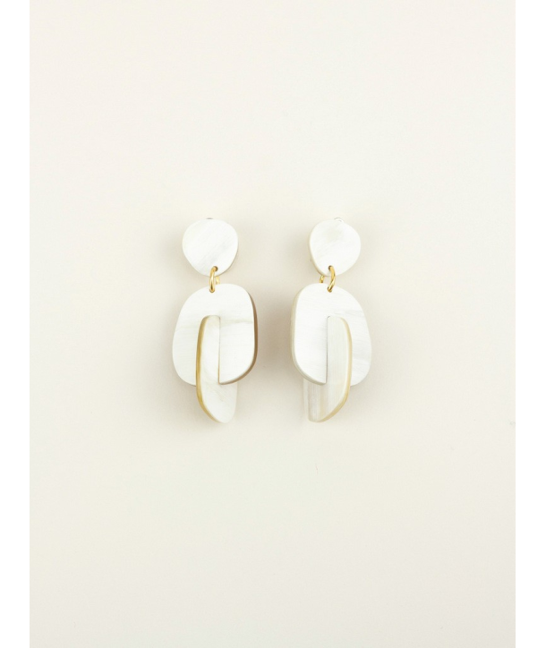 Boucles d'oreilles à clips mi-bois en corne blonde