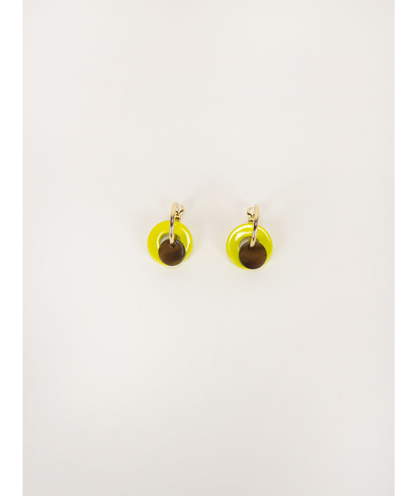 Boucles d'oreilles anneau laqué jaune clair et pastille sabot
