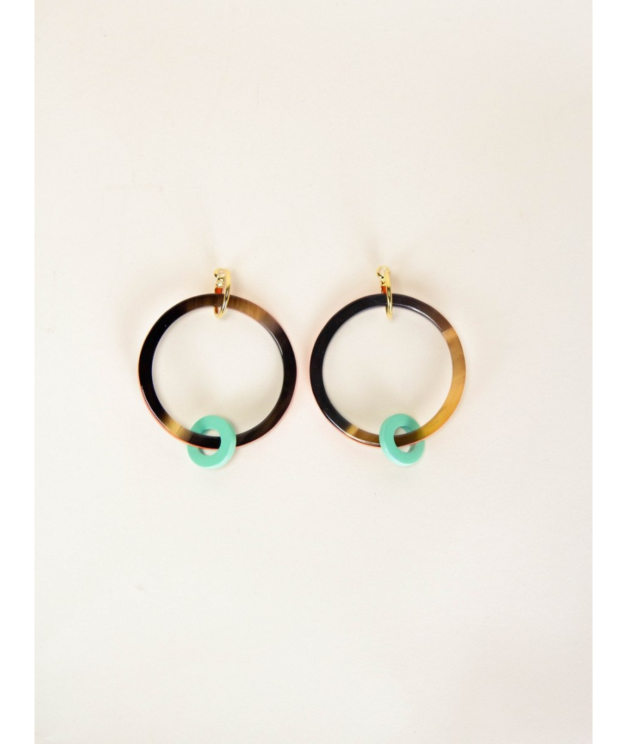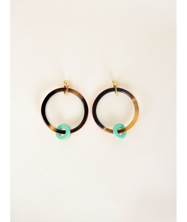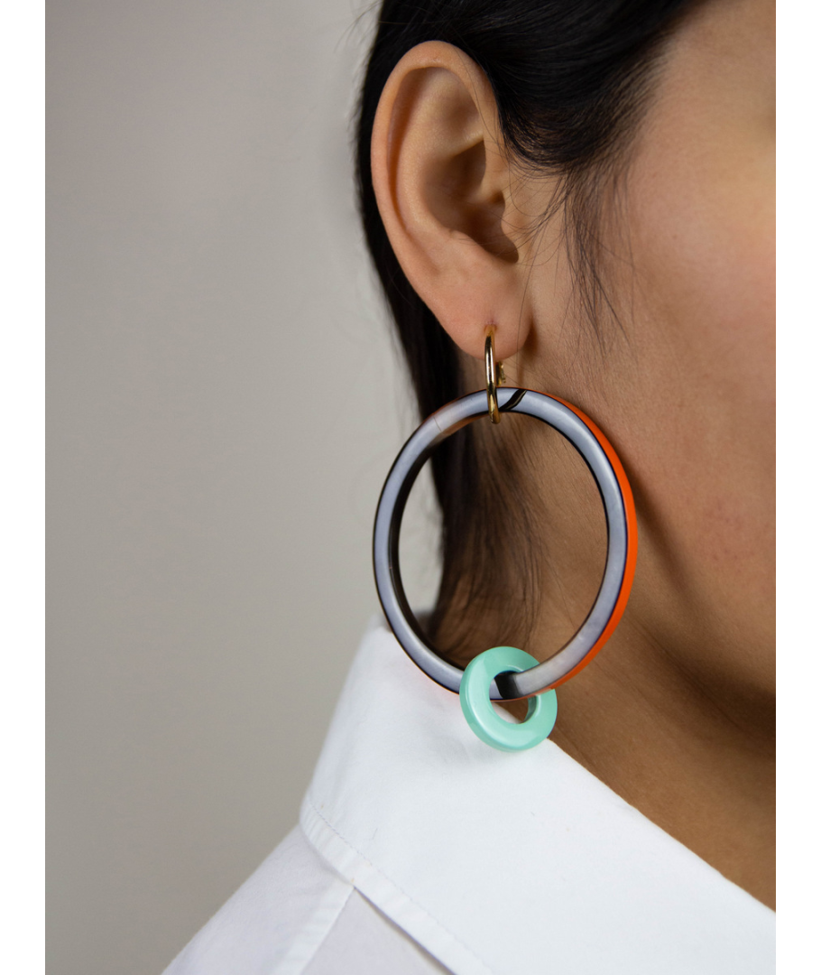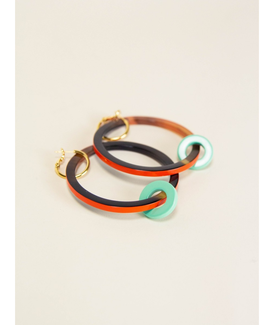 Boucles d'oreilles grand anneau et petit anneau laqués orange vert