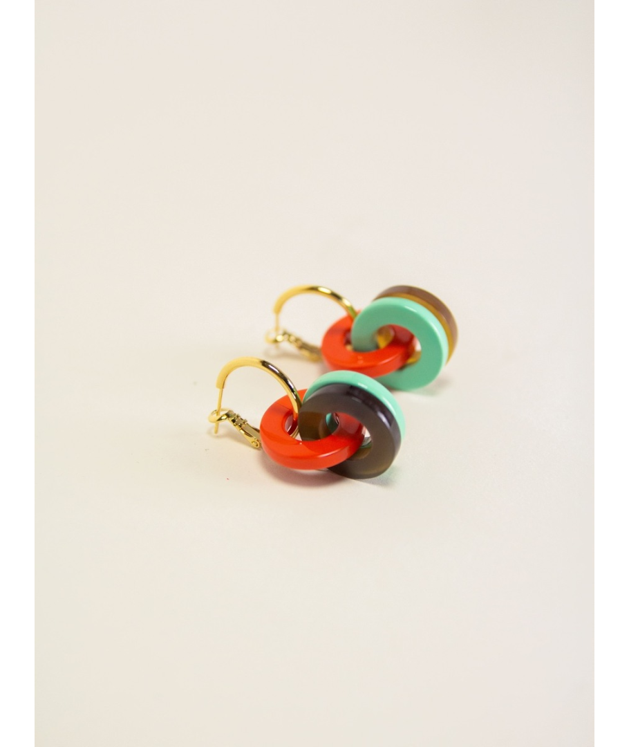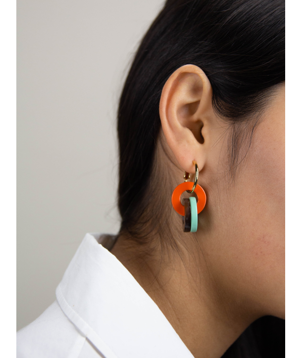 Boucles d'oreilles 3 petits anneaux laqués orange vert