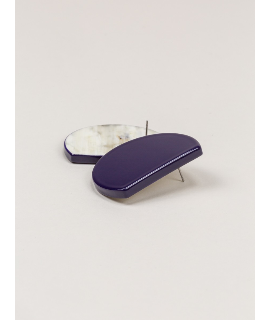 Boucles d'oreilles Rayon en corne blonde et laque violet