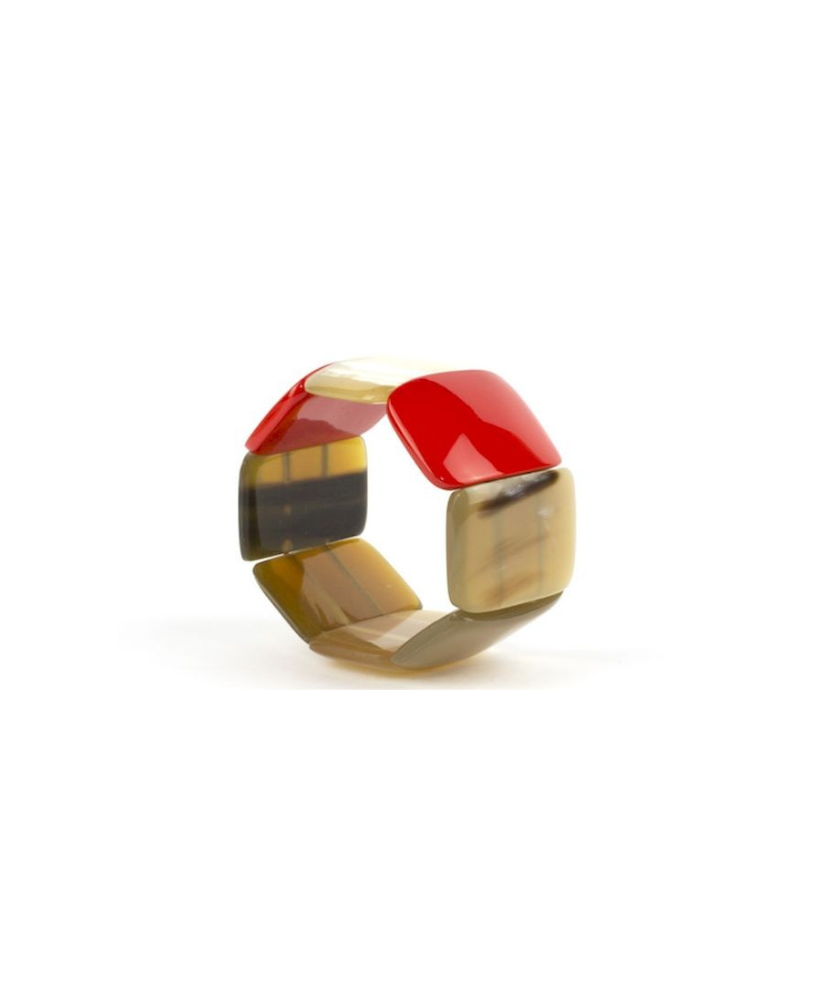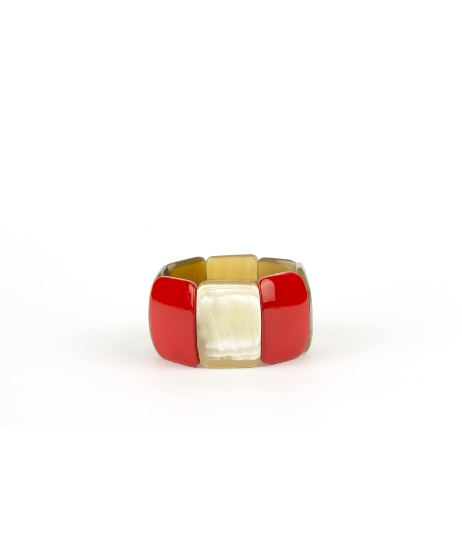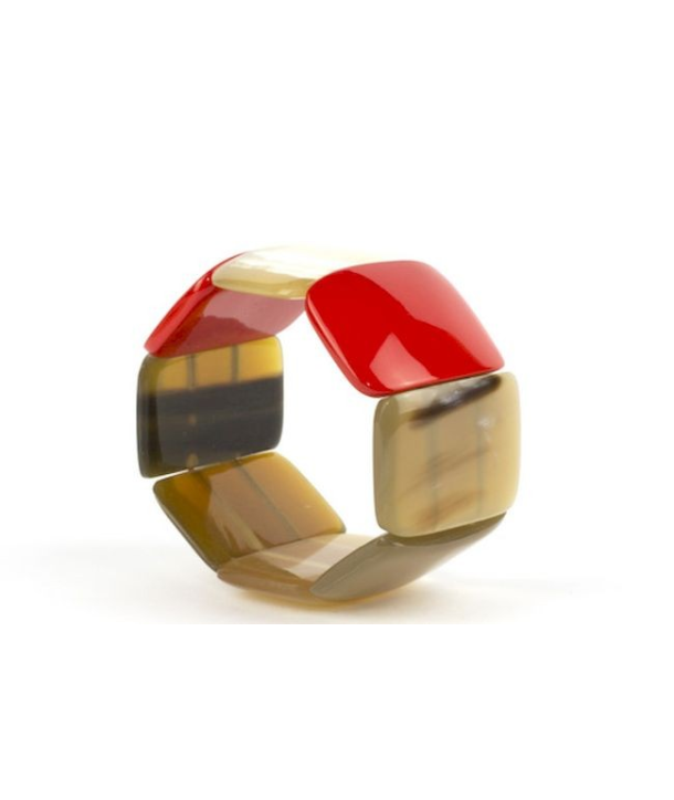 Bracelet articulé 8 grosses pièces en corne blonde et laque rouge