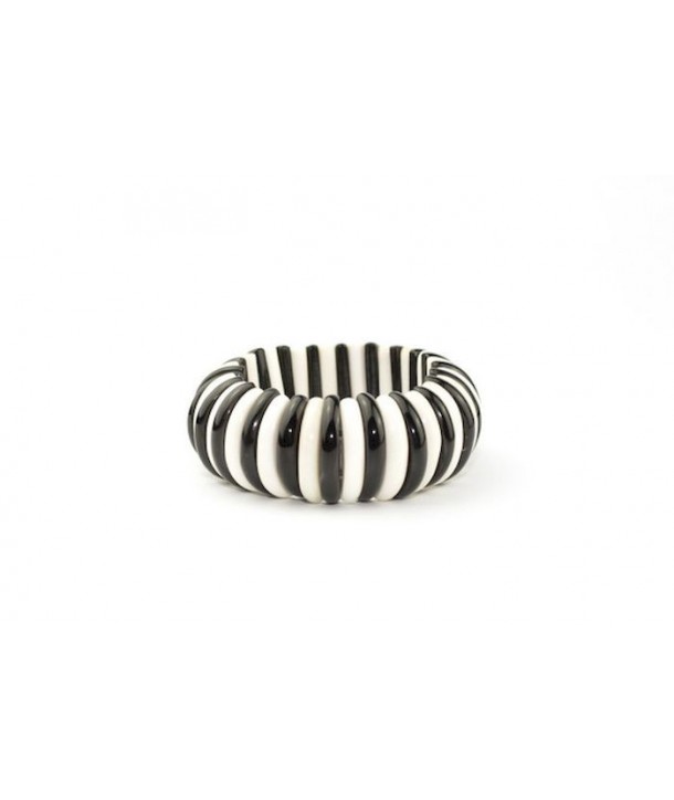 Bracelet articulé demi-disques en os et corne noire unie