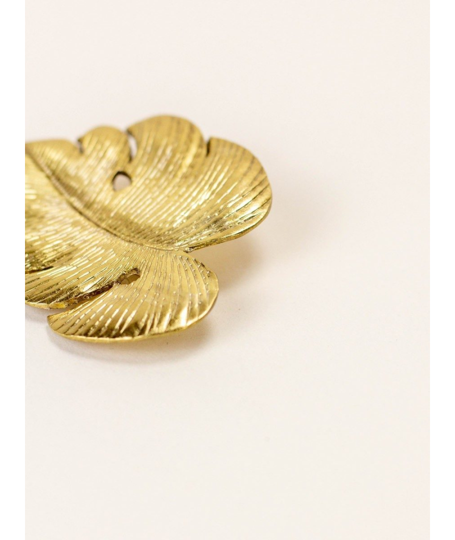 Broche Monstera en laiton plaqué or