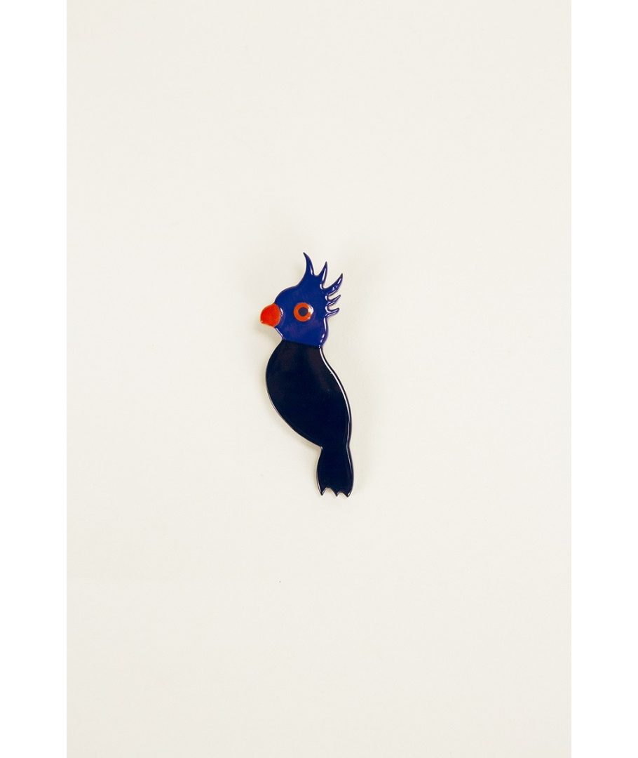 Broche Cockatoo en corne et laque tricolore - orange et bleu