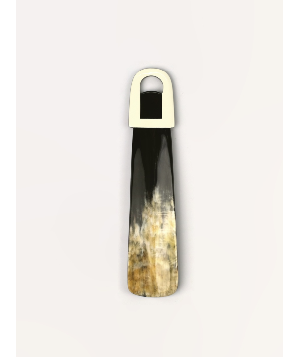 Petit chausse-pied en corne noire marbrée et laque ivoire