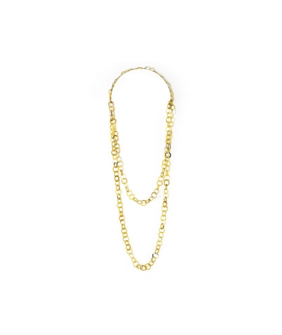 Grand sautoir petits anneaux ronds diamètre 12 mm longueur 160 cm en corne blonde de zébu africain