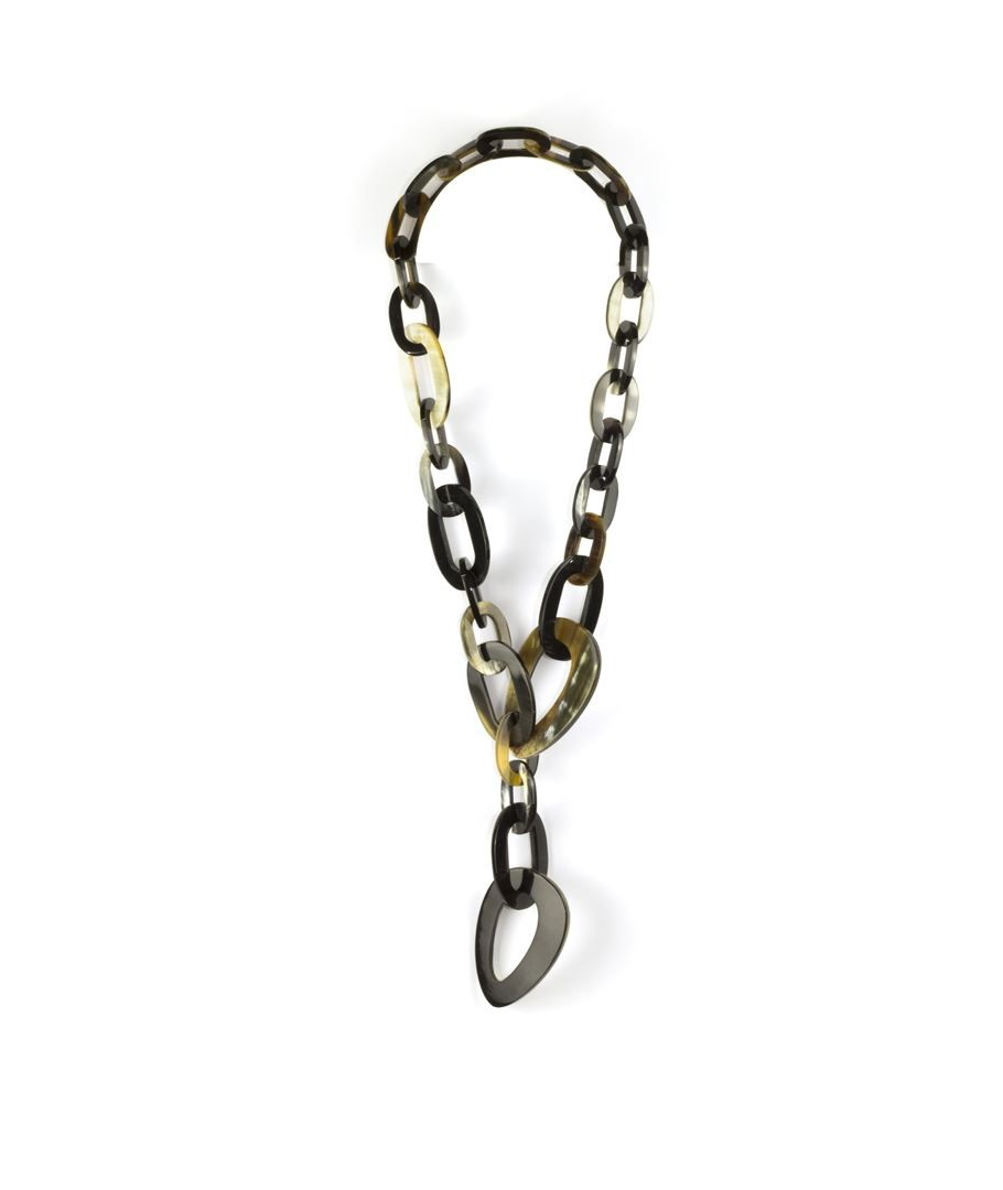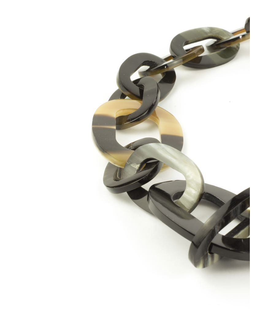 Sautoir petits et grands anneaux ovales en corne noire marbrée