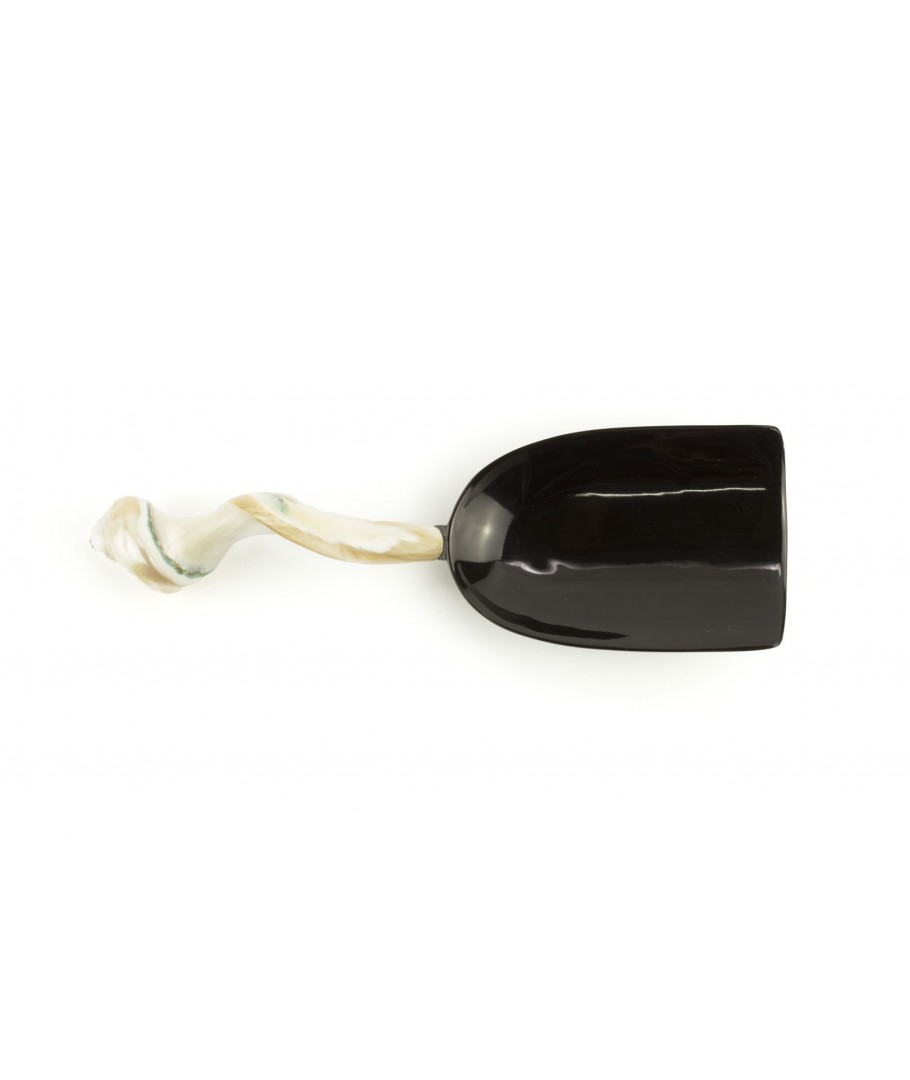 Cuillère à riz ovale manche escargot en corne noire et nacre