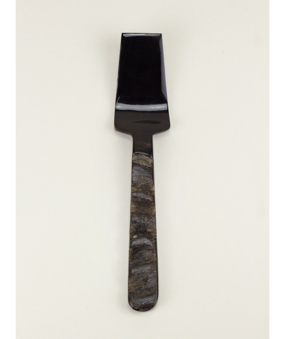 Pelle à tarte en corne noire avec manche en corne brute