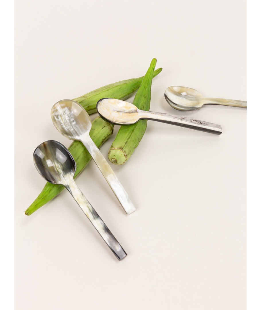 Set de 6 cuillères à café Baguette en corne noire africaine (par 6)