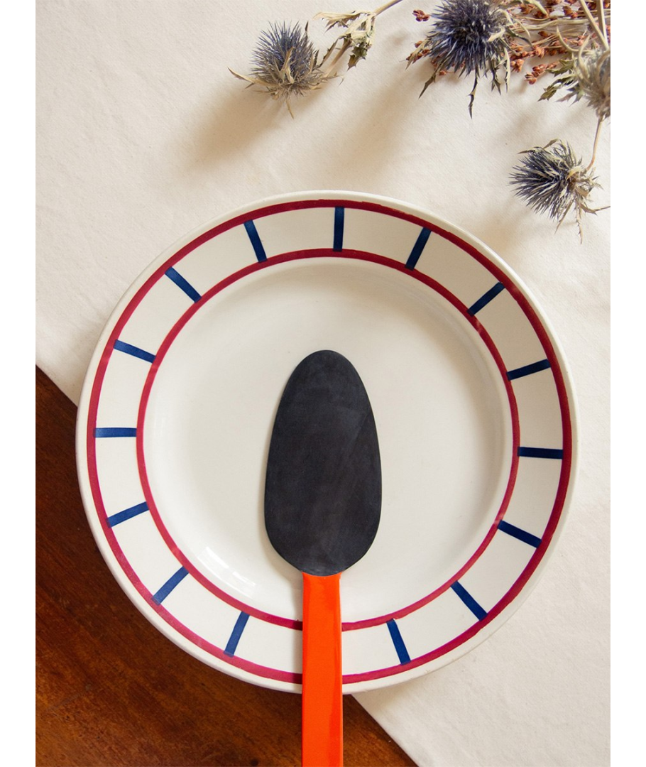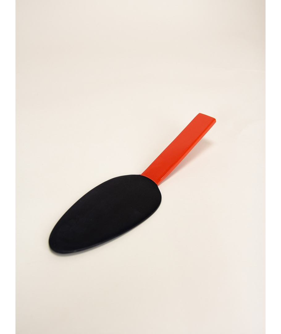 Pelle à tarte en corne avec manche laqué rouge