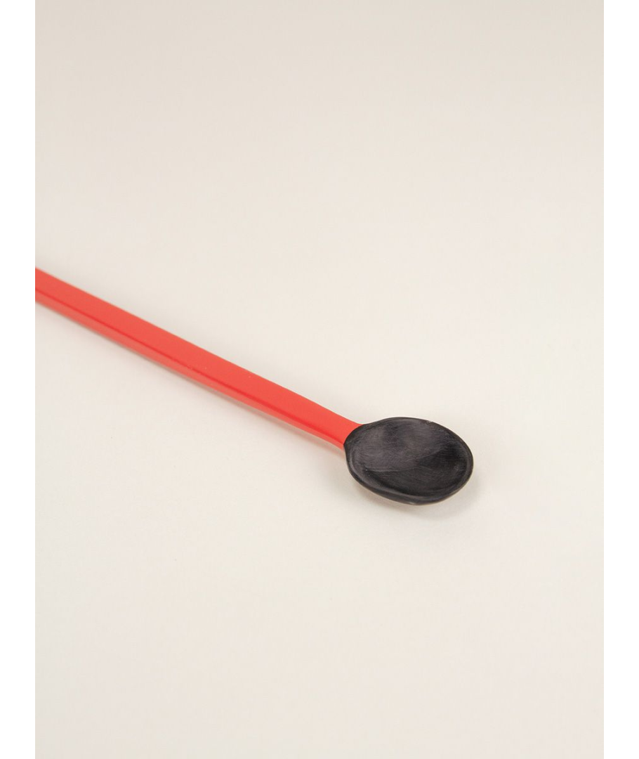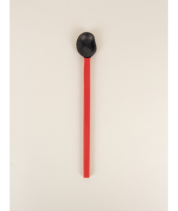 Cuillère à confiture en corne noire avec manche laqué rouge
