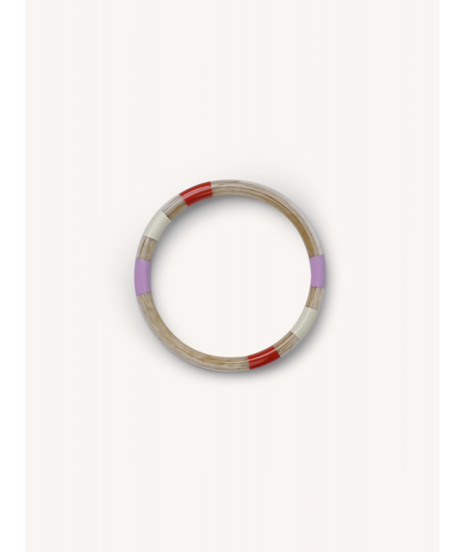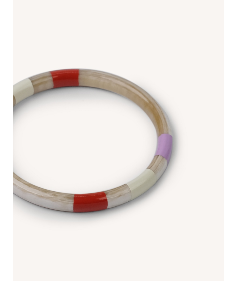 Jonc fin en bois laqué bleu clair, bleu nuit et orange, taille S