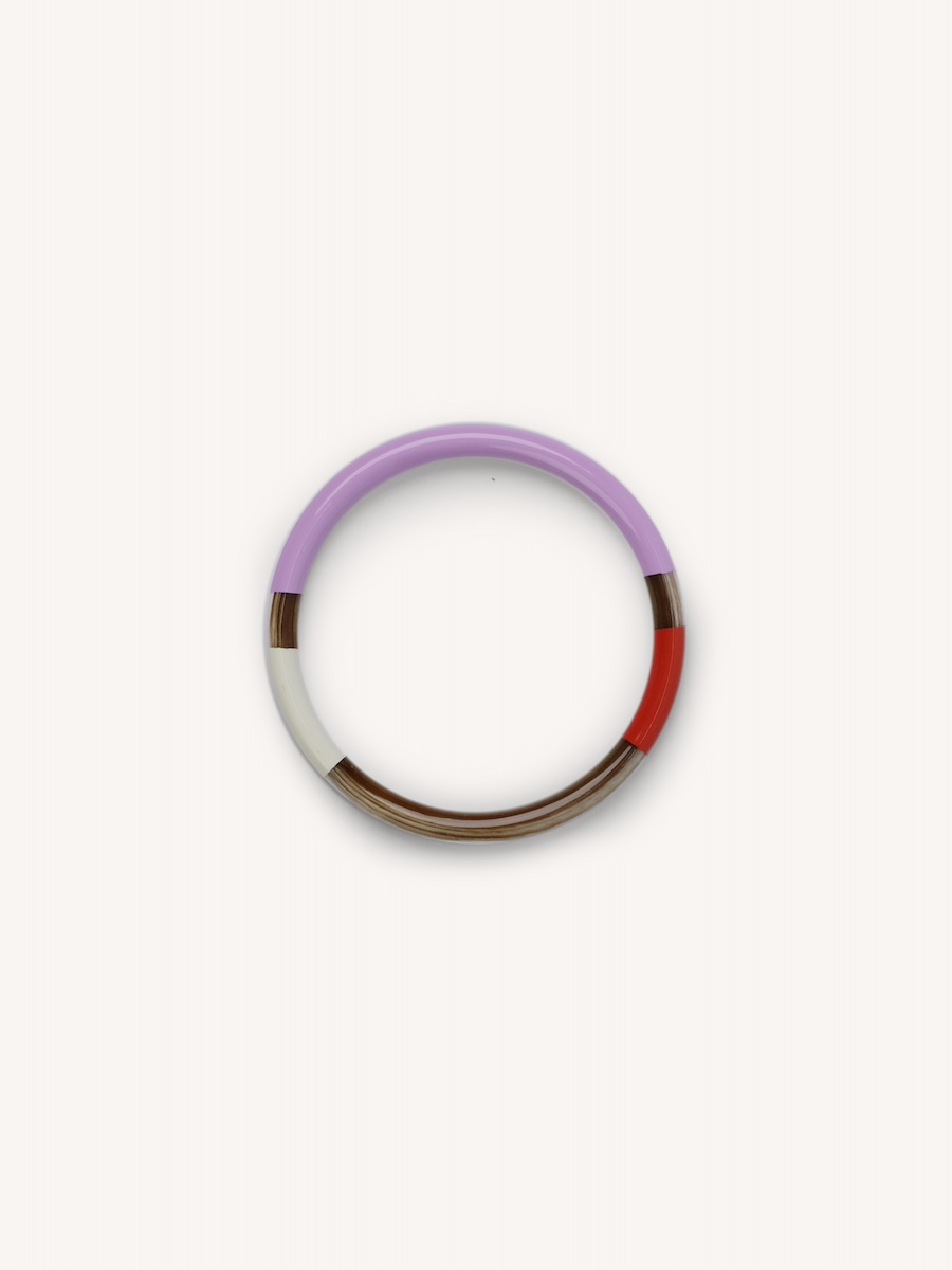 Jonc fin en bois laqué bleu clair, bleu nuit et orange, taille S