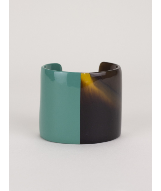 Manchette en corne naturelle laque vert émeraude, taille M