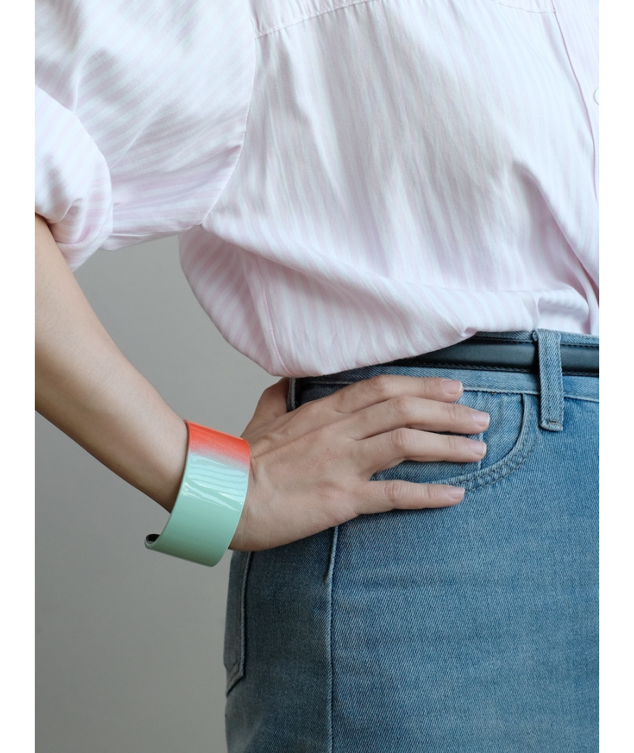 Manchette fine laquée fondu orange vert taille M