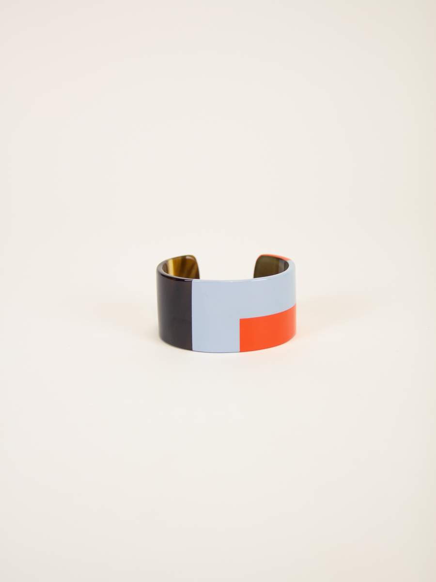 Manchette épaisse en bois laqué bleu clair, bleu nuit et orange, taille S