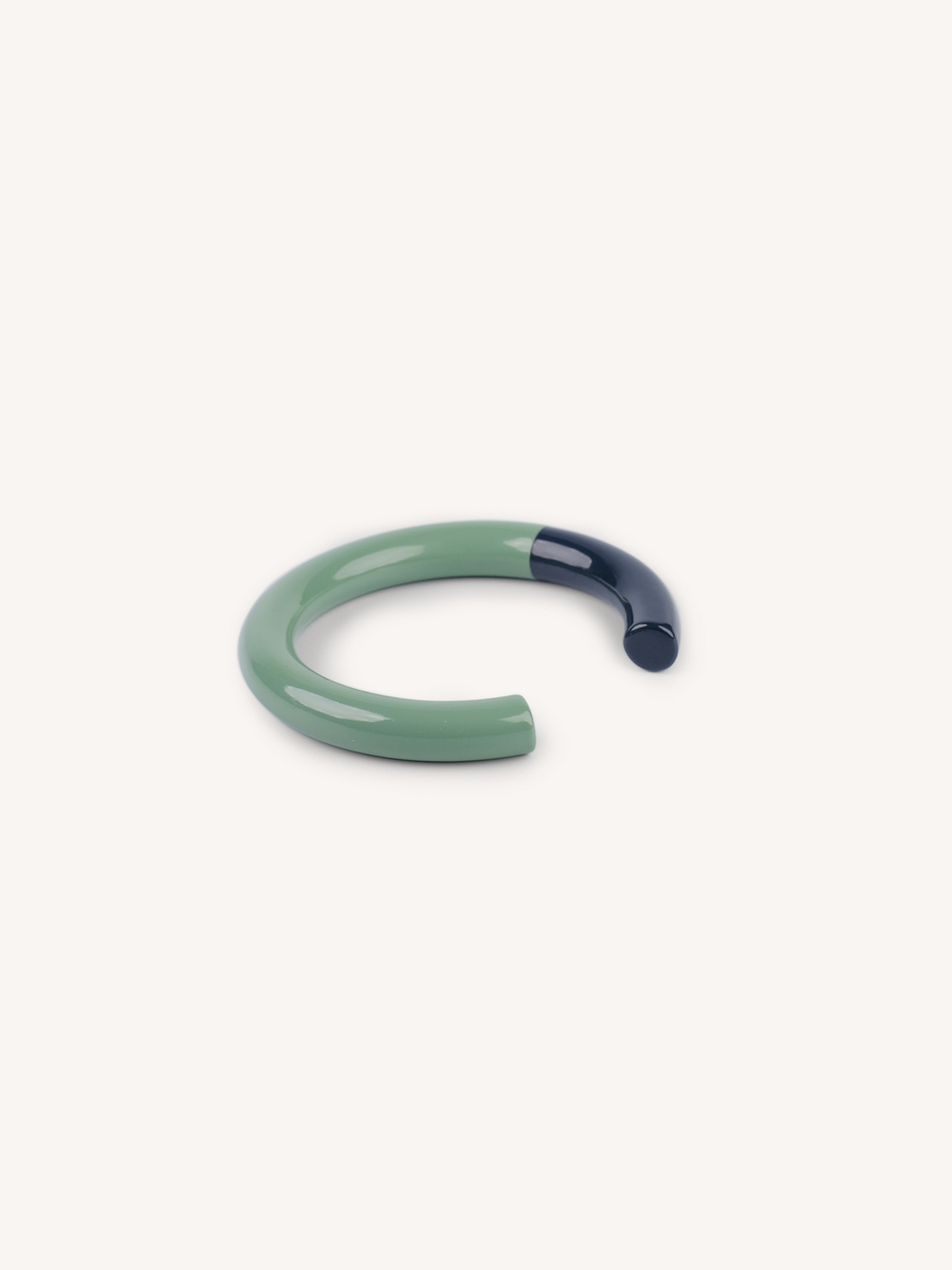 Manchette fine en bois laqué bleu clair, orange et sable, taille S