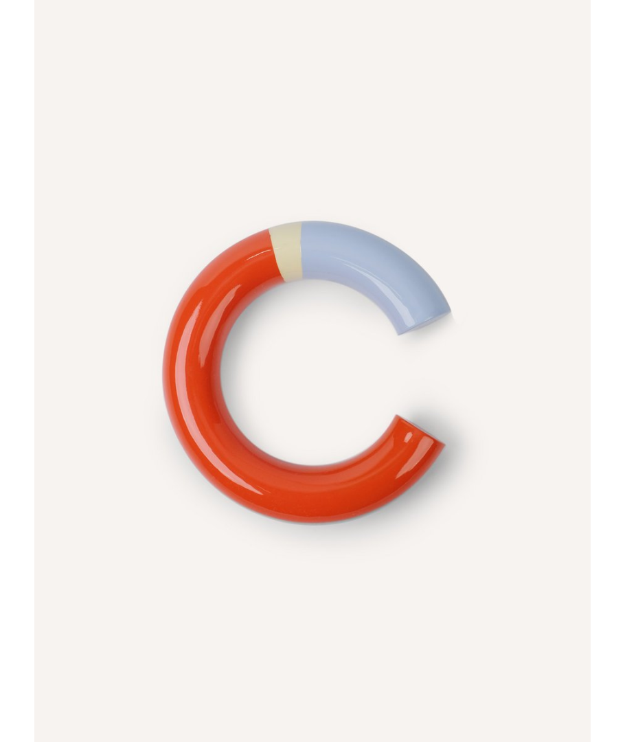 Manchette épaisse en bois laqué orange, bleu clair et sable, taille L