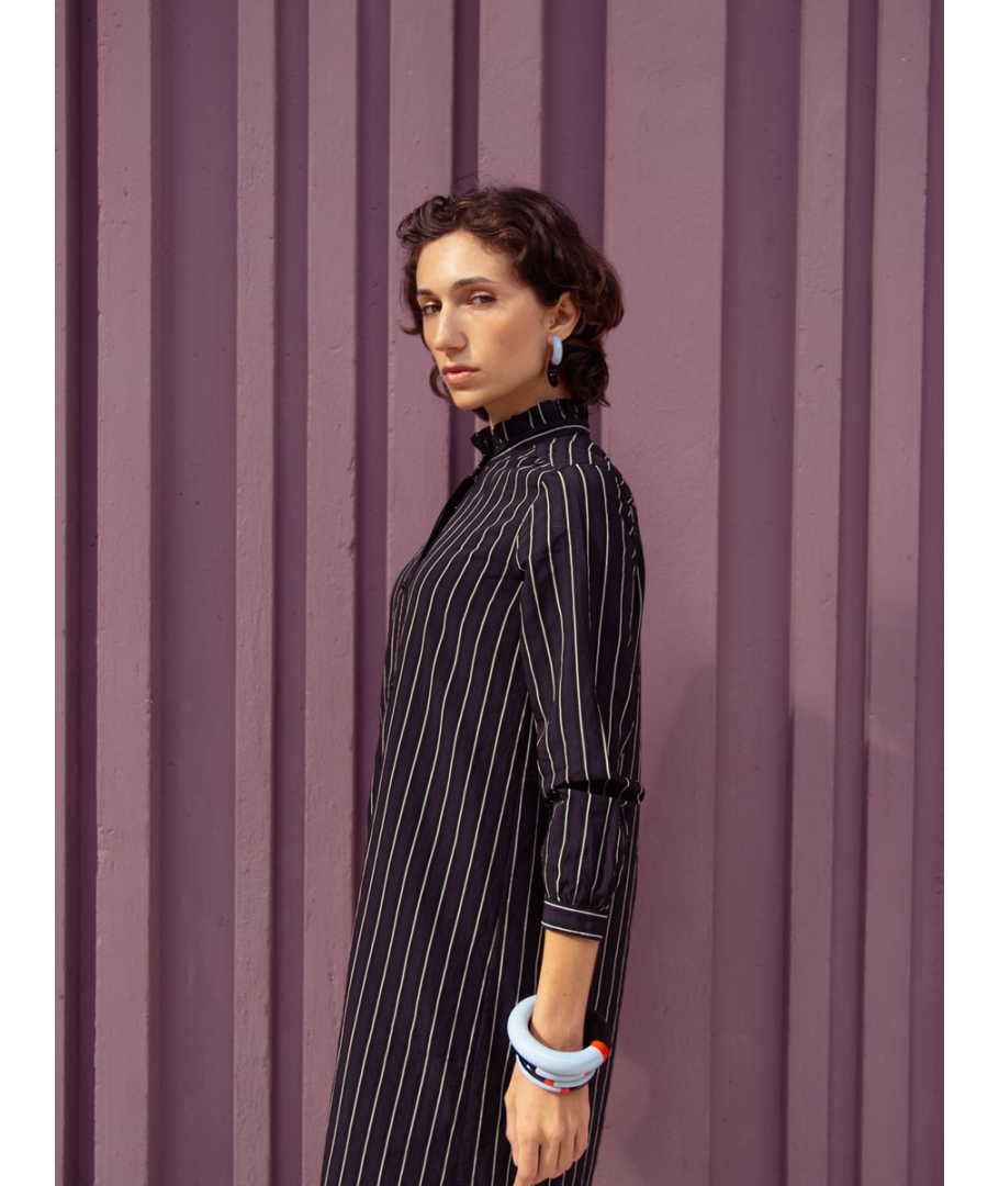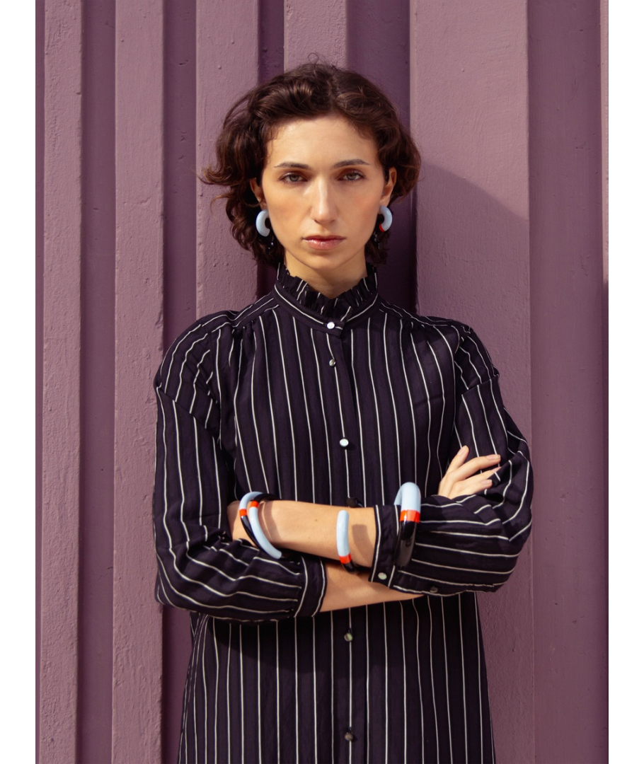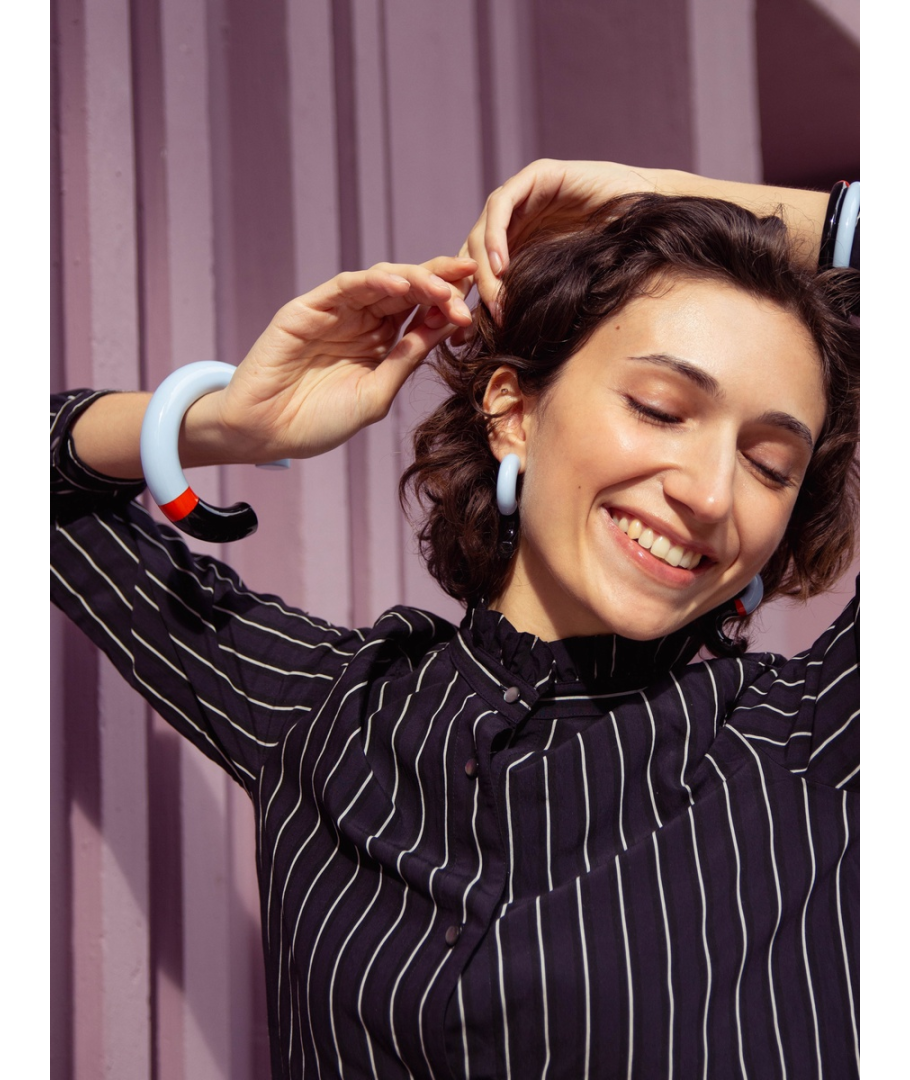 Manchette fine en bois laqué bleu nuit, bleu clair er orange, taille S