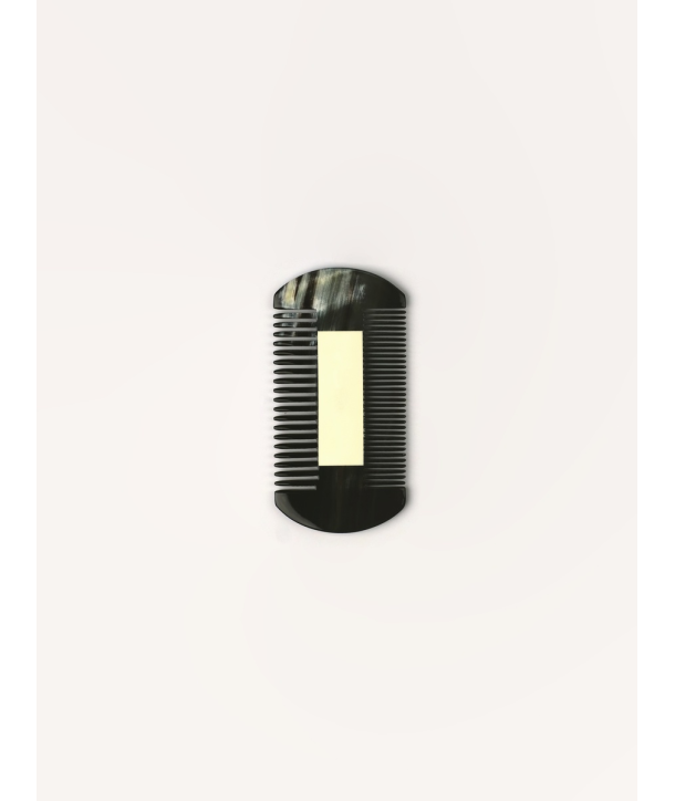Peigne à barbe en corne noire marbrée, laque ivoire trait