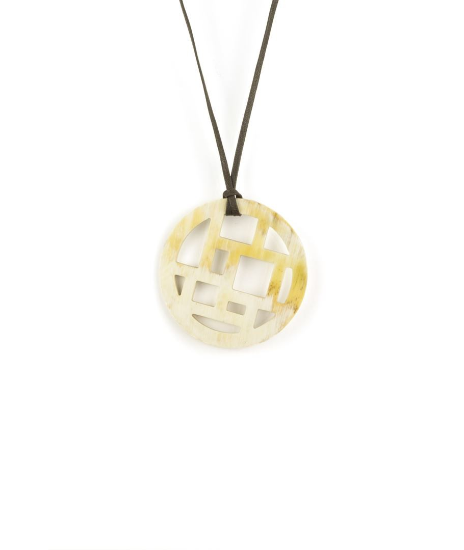 Pendentif damier bords libres en corne noire unie